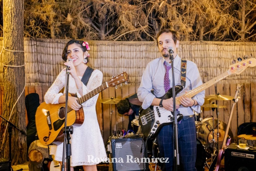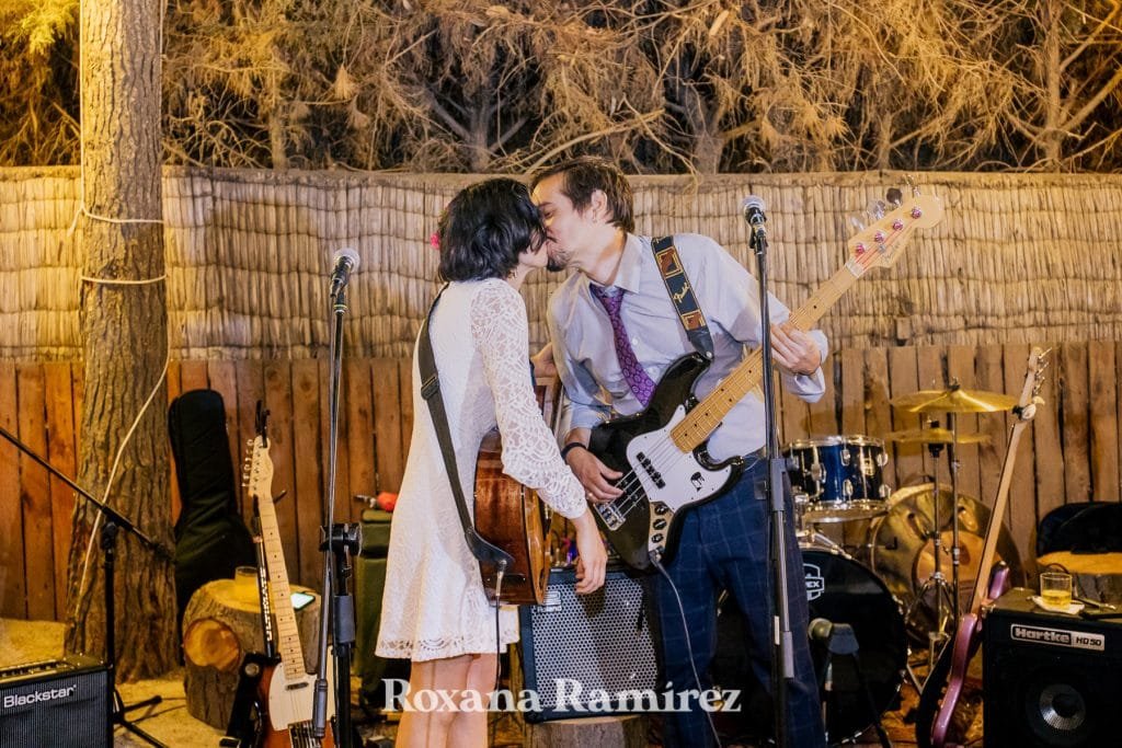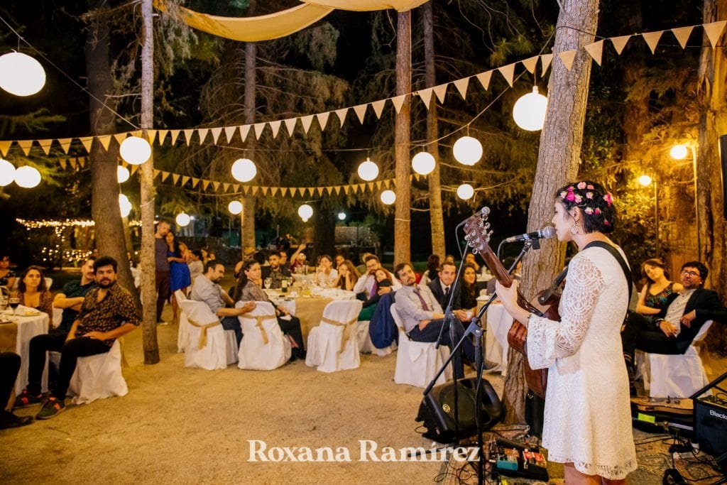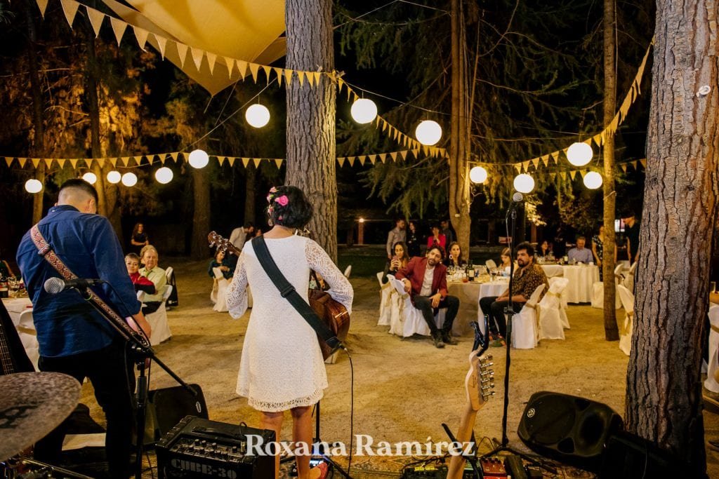 Su boda y la fiesta estuvo bastante enfocada en la música, ella entro con su hija bailando y sus amigos tocando. Luego durante la cena los amigos se levantaban de la mesa al escenario que era el centro que todo lo unía, improvisaban y disfrutaban del maravilloso y ameno ritmo.