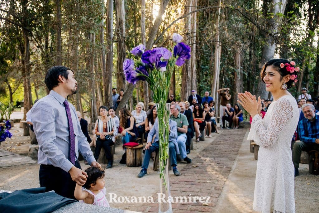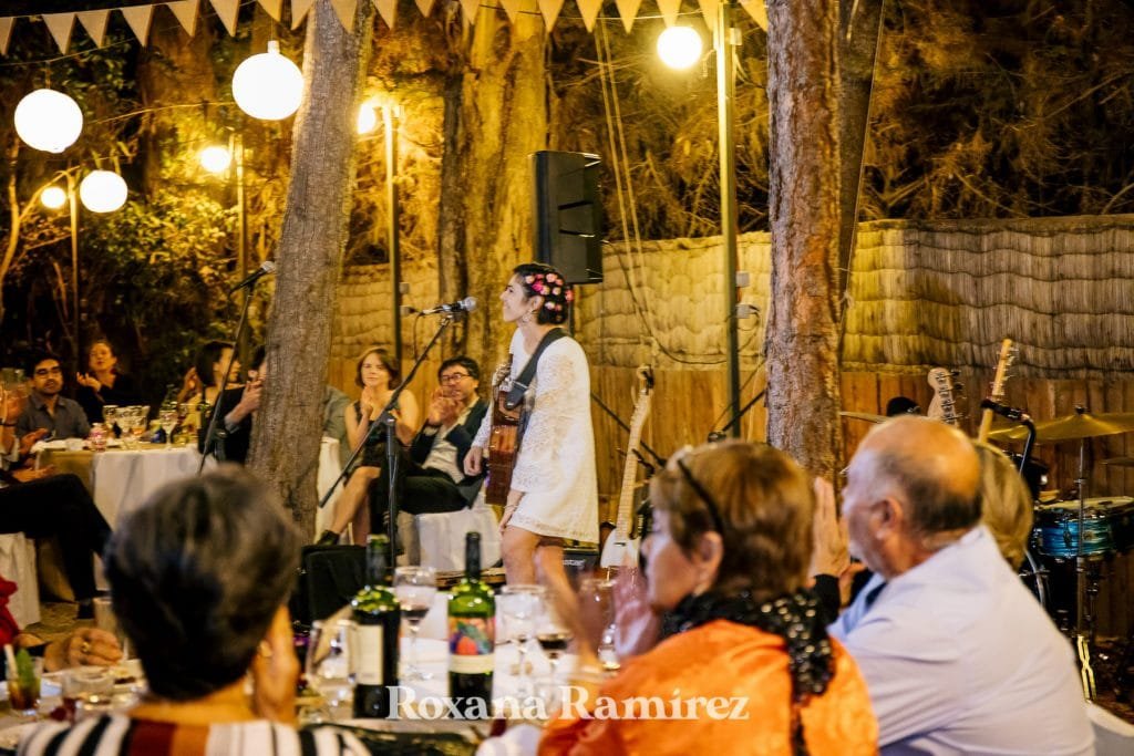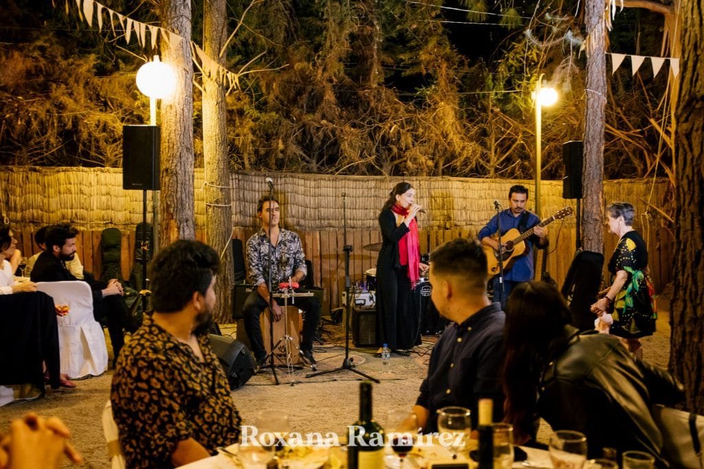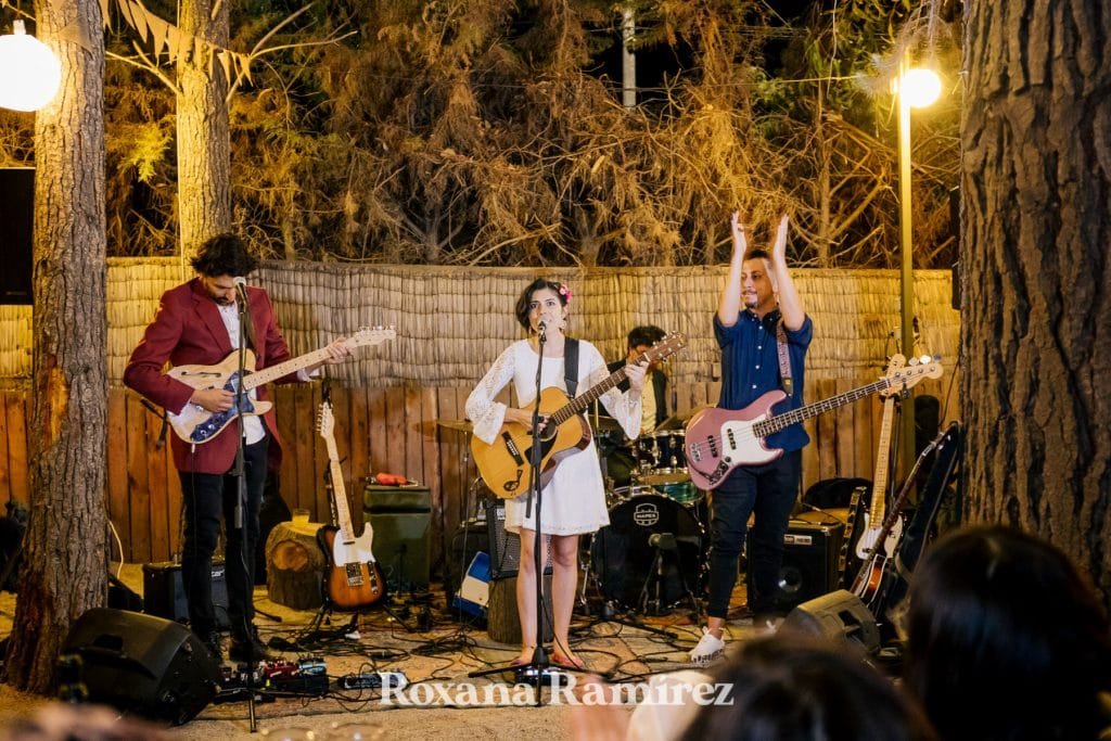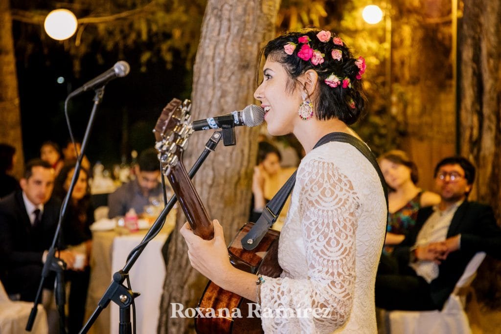 Su boda y la fiesta estuvo bastante enfocada en la música, ella entro con su hija bailando y sus amigos tocando. Luego durante la cena los amigos se levantaban de la mesa al escenario que era el centro que todo lo unía, improvisaban y disfrutaban del maravilloso y ameno ritmo.