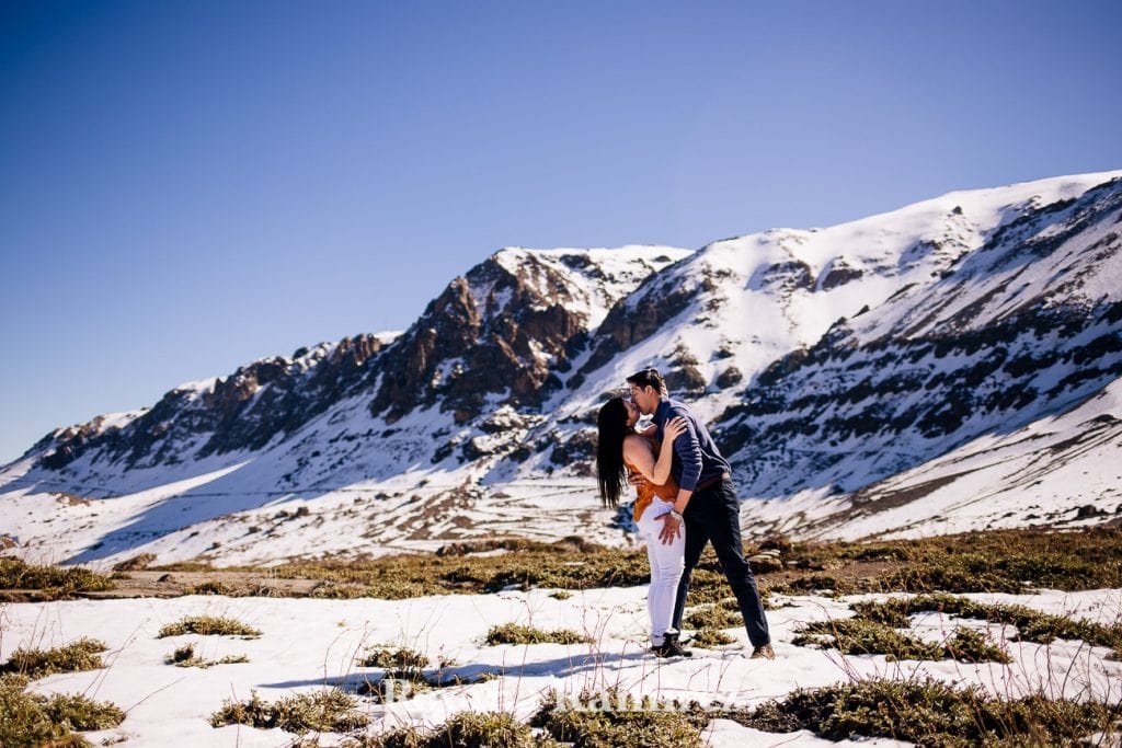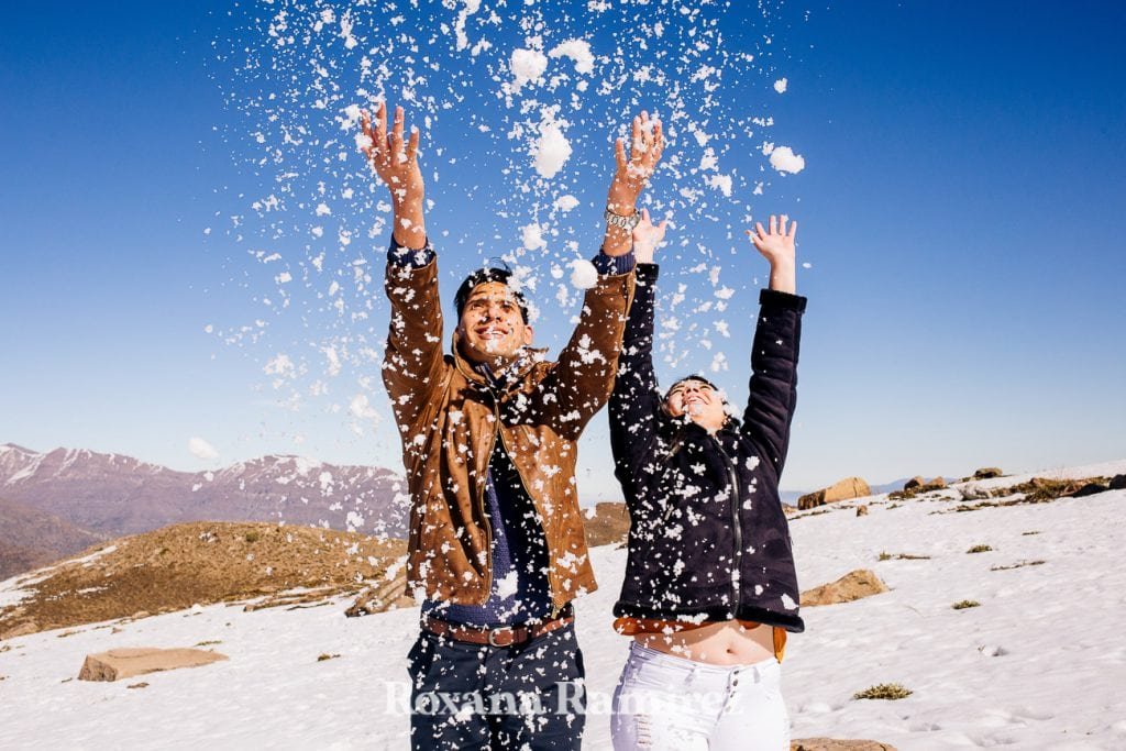 Él se encuentra en chile y ella estaba preparando su viaje para venir a verle, hace mucho que no se veían y tenían que disfrutar al máximo, así que organizamos una mañana para ir al colorado para estar en la cordillera de los Andes, era conocer un nuevo lugar y la maravillosa experiencia de la nieve, luego al volver a Santiago para la segunda parte de la sesión de fotos había sorpresa… y claro que con un rico vino chileno