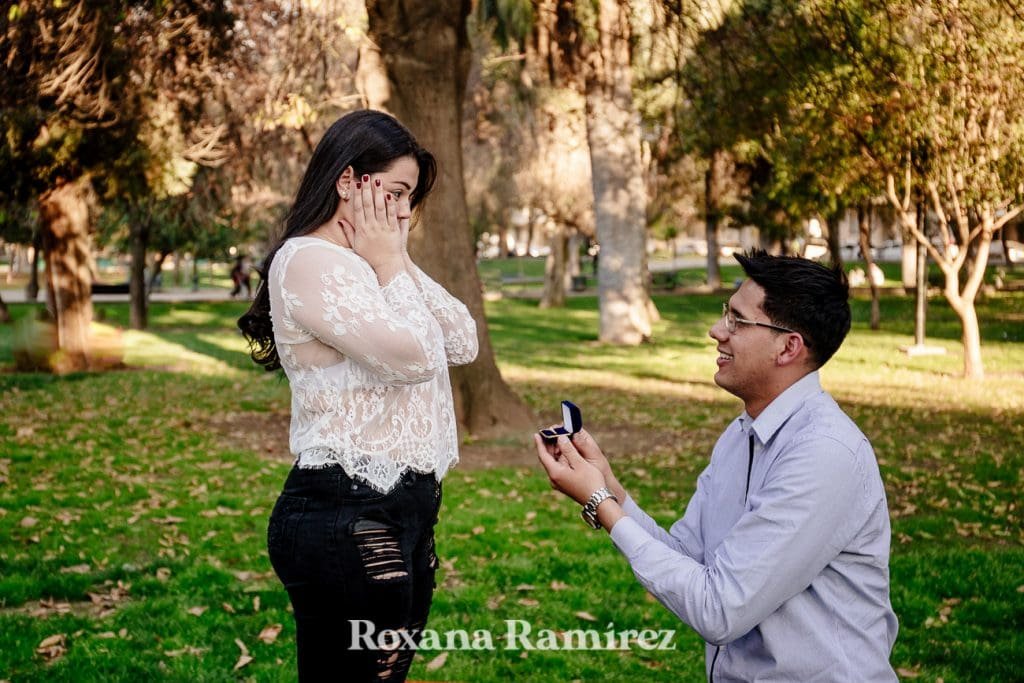 Esta sorpresa estaba pensando pero solo por Renzo que tenía un anillo y vino para celebrar. La sesión de compromiso la hicimos en el parque, el se agacha y le hace las preguntas, quieres casarte conmigo… y la respuesta por supuesto; Si!