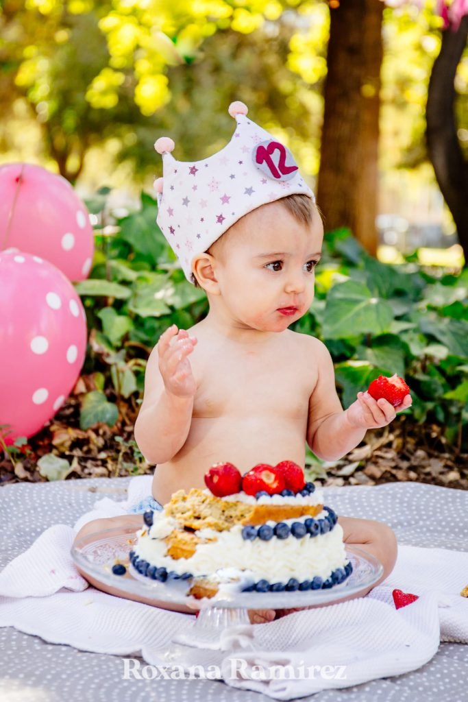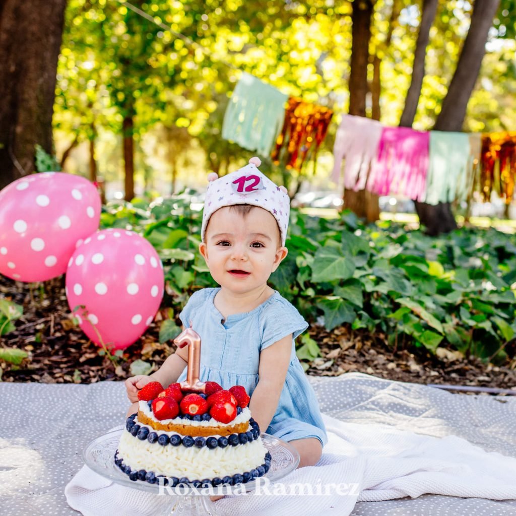 Siento que celebrar el primer cumpleaños de tu bebé es una celebración culmine, se cumple un proceso, ya ha se ha cumplido un año desde que diste a luz, desde que eres madre de ese ser que tanto amas y Celebrarlo es infaltable. Así que en este caso hicimos una pequeña reunión muy enfocada en la sesión de fotos. Entonces la madre maravillosa Nuria pidió una torta súper natural sin azúcar añadido, una torta que como ven es hermosa y riquísima, hecha de plátano, zanahoria, dátiles y arándano, muy buena!